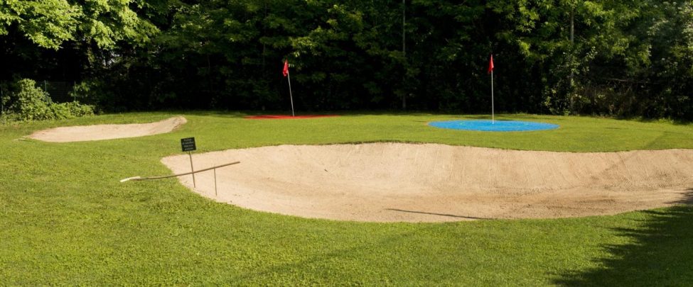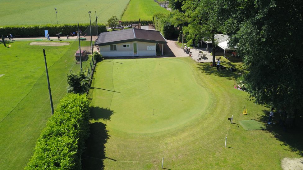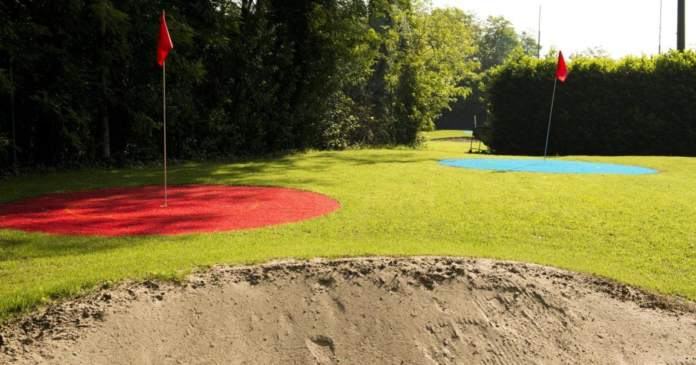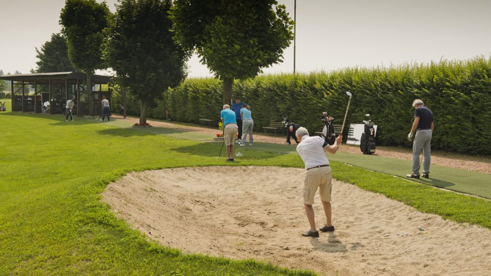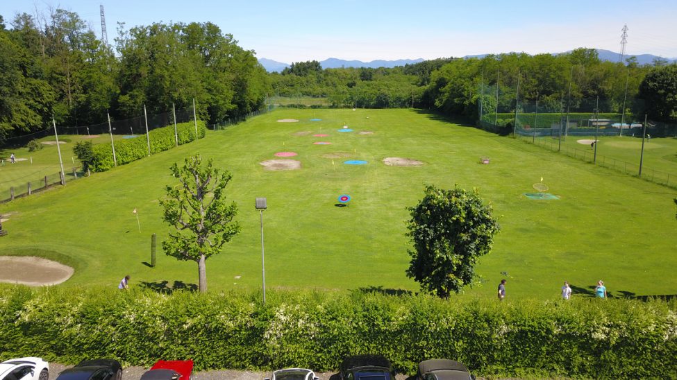 La zona di tiro si presenta con una bellissima Tee line in erba sintetica molto larga e lunga circa 65 mt. che permette il posizionamento di almeno 25 giocatori. Al termine di essa, sorge una struttura di tiro coperta con al suo interno 5 postazioni. Il campo pratica gode anche di 3 nuove zone che danno la possibilità di realizzare colpi di golf, riproducendo esattamente le situazioni proposte dal campo effettivo. Le tre zone con distanze variabili di 50, 90 e 130 metri circa, si presentano con dei target green di vari colori che permettono di verificare la precisione dei vostri colpi. I green sintetici sono circondati da green in erba e corredati da veri bunker in sabbia. Tutte le zone sono corredate da precise indicazioni delle distanze da effettuare. Altra zona molto interessante e quella dedicata al gioco corto, posizionata appena dietro la nuova Club House. E’ costituita da un ampio putting green (sono in corso lavori che raddoppieranno l’area del putting green) e postazione di approcci differenziati con un grande green e due bersagli differenti realizzati in erba sintetica colorata, zona difesa di due grandi bunker da cui allenarsi. Anche questa zona è corredata da indicazioni sulle distanze e sui ferri corretti da usare . Per non farci mancare niente, il tutto è integrato con una graziosa zona relax che permette di recuperare le forze tra un allenamento e l’altro.